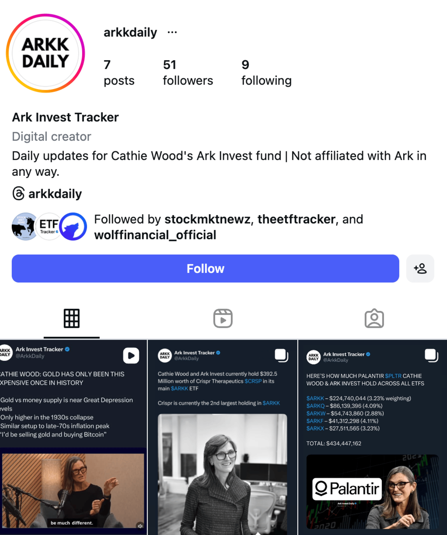 FOLLOW MY NEW ARKK DAILY TRACKER INSTAGRAM ACCOUNT