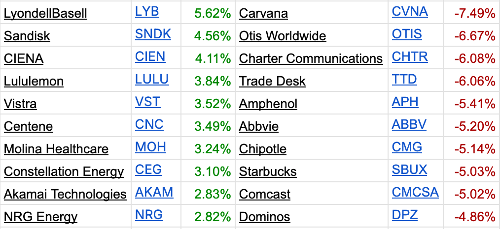 Here are the Best and Worst Performing S&P 500 Stocks from today