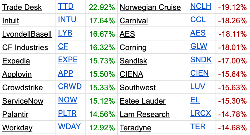 Best and Worst Performing S&P 500 Stocks