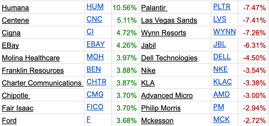 Best and Worst Performing S&P 500 Stocks