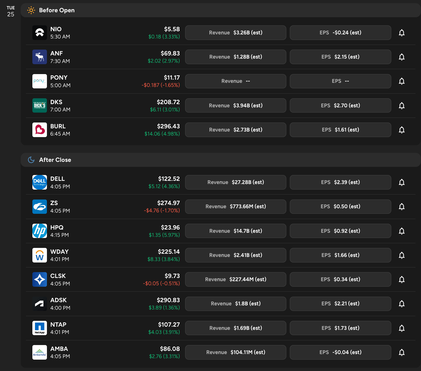 Earnings Calendar