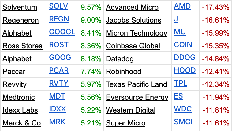 Best and Worst Performing S&P 500 Stocks