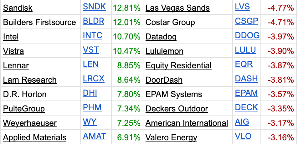 Here are the Best and Worst Performing S&P 500 Stocks from today